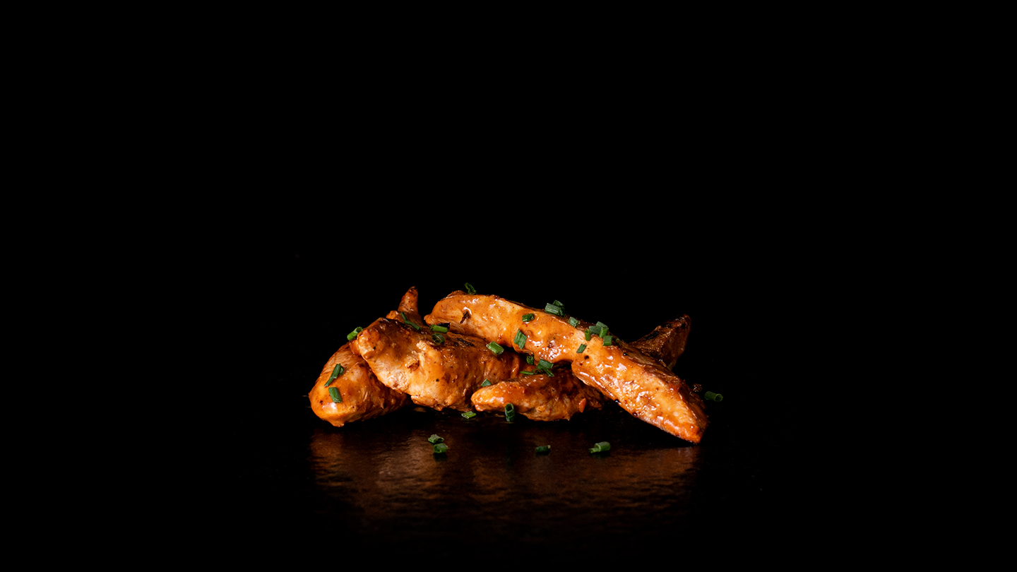 Firey, succulent chicken tenders encased in a crisp, spicy, zingy batter.