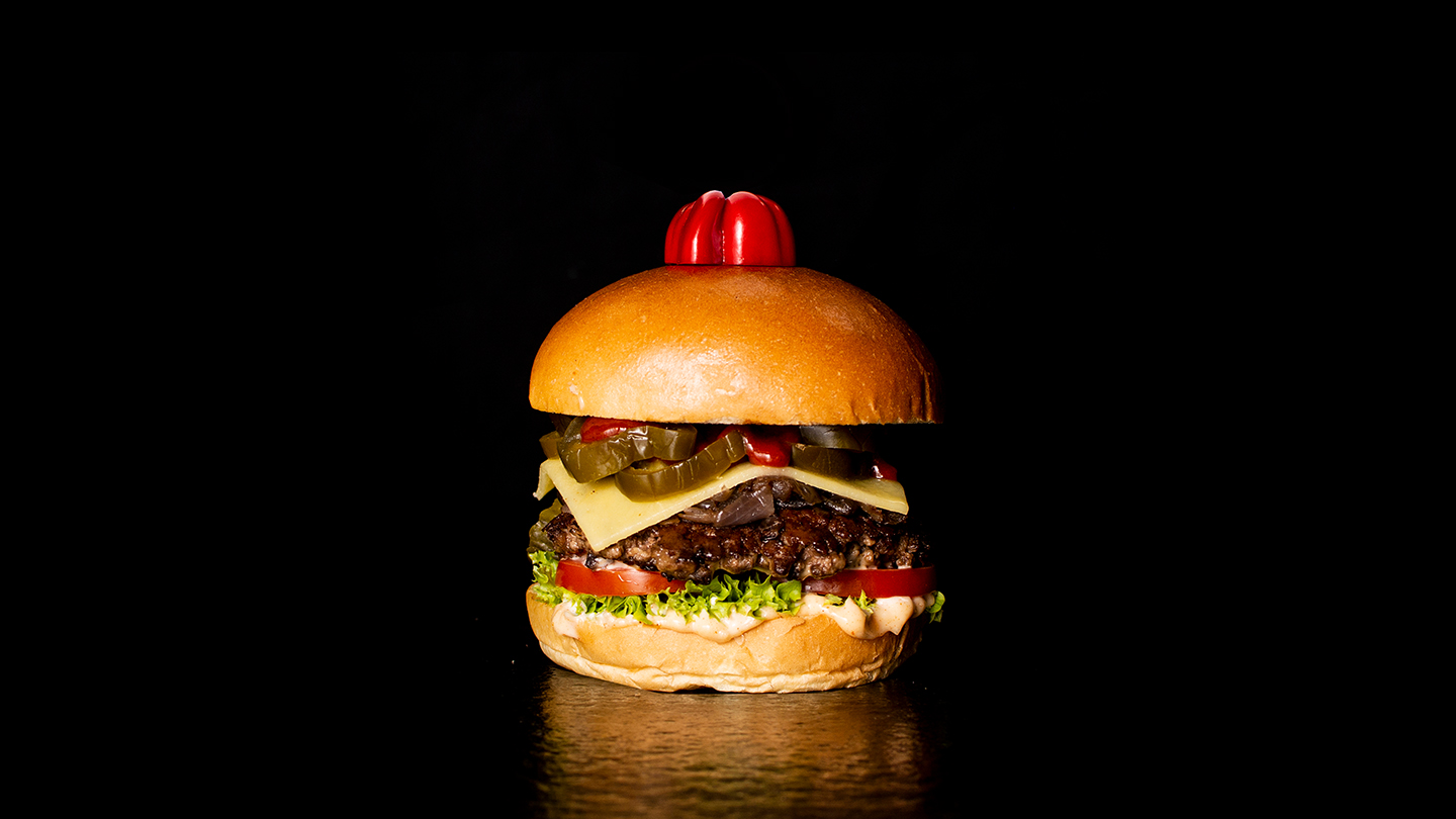 4oz Angus beef, fresh salad, gherkins and caramelised onions. Topped with IceBurg® sauce, Magic Salt and Monterey Jack cheese. Served in a brioche bun.
