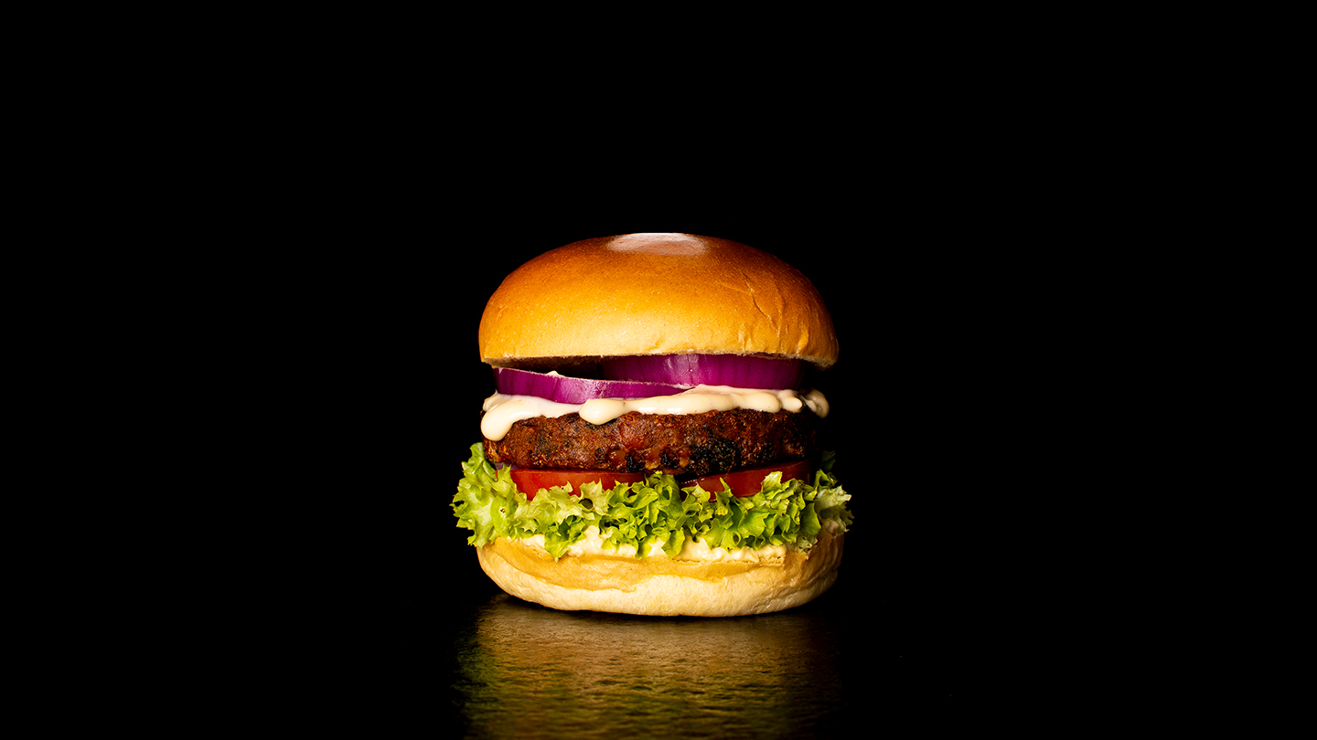 Crispy exotic falafel served in a brioche bun loaded with hummus, gherkins, fresh salad and onions topped with garlic mayo.