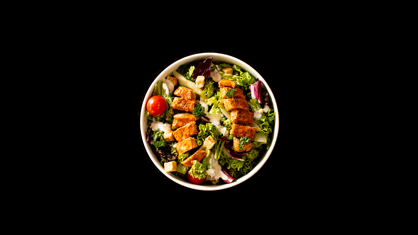 Fresh salad leaves, cherry tomatoes, cucumber, sweet peppers and radish, drizzled with sweet chilli dressing paired with our crisp, deep-fried chicken.