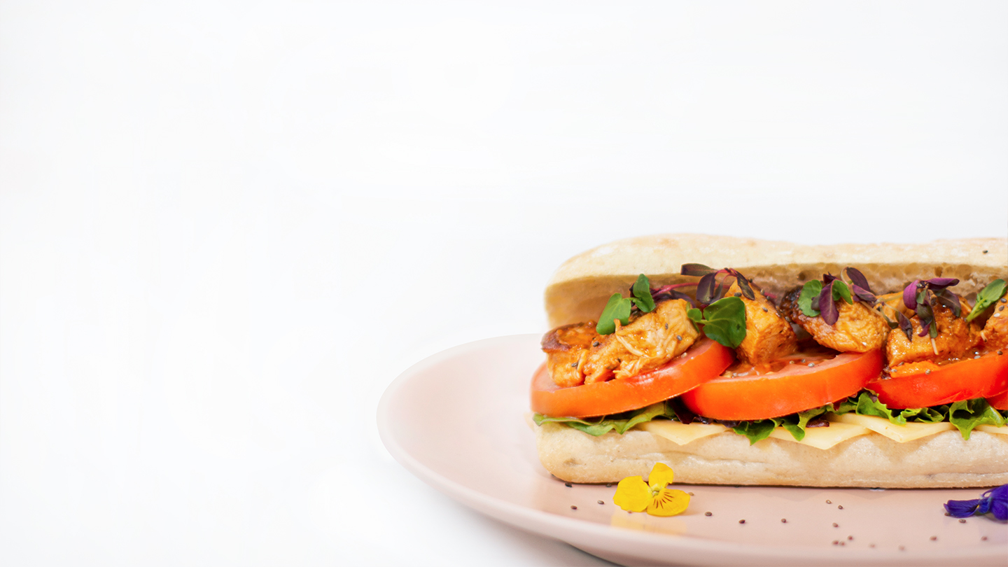 Grilled chicken served with roasted sweet peppers, onions and chill, pepper chutney, melted cheese and bechamel sauce. Served on toasted white bread with fried parsnips.